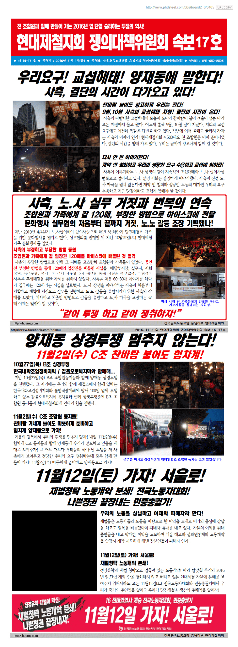 현대제철지회 쟁의대책위원회 속보16호